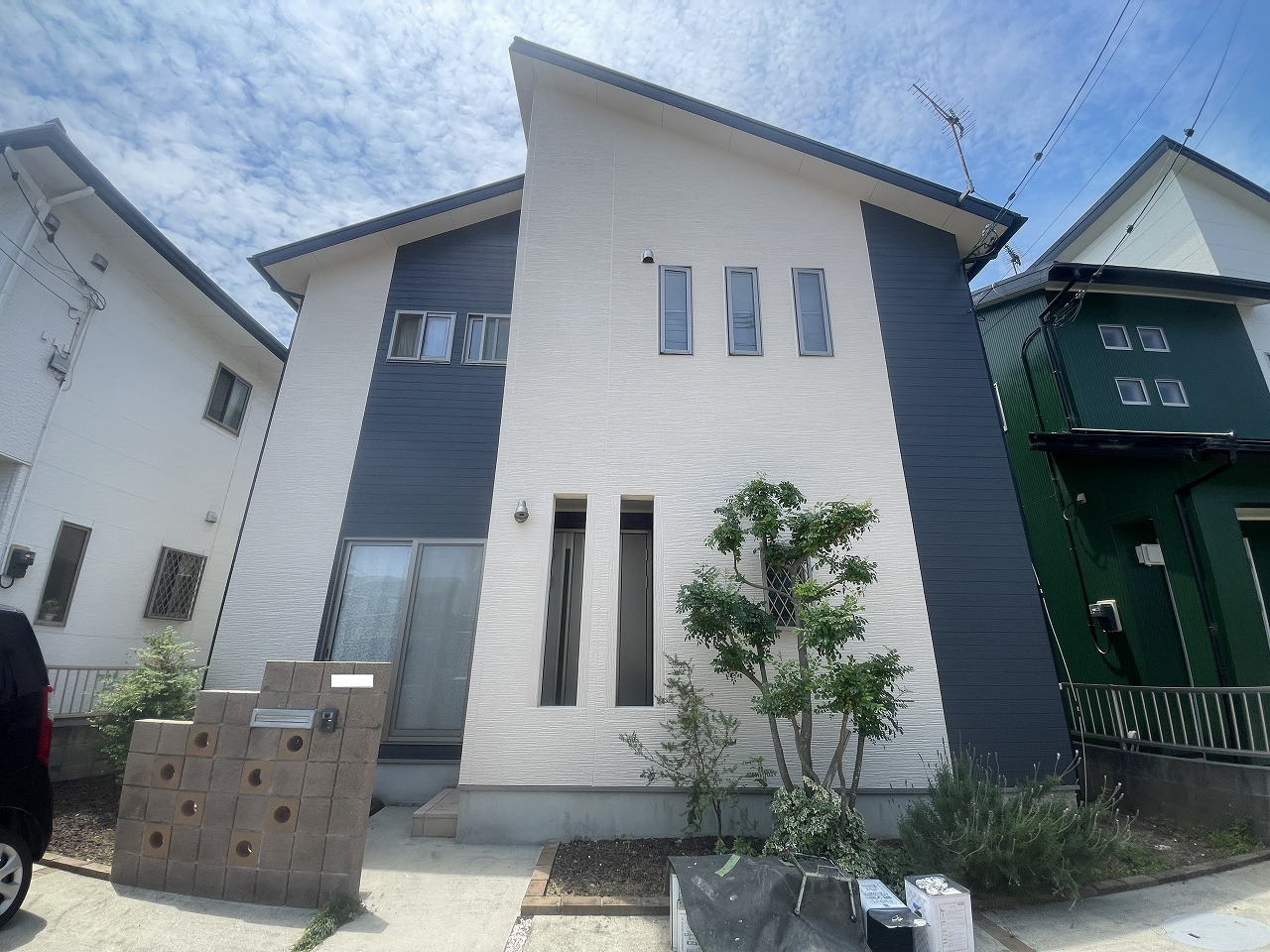 香川県高松市のお家の外壁を3色使ってお洒落に塗り分けました
