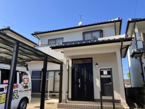 モルタル外壁のお家を白系で上品なイメージに塗り替えました